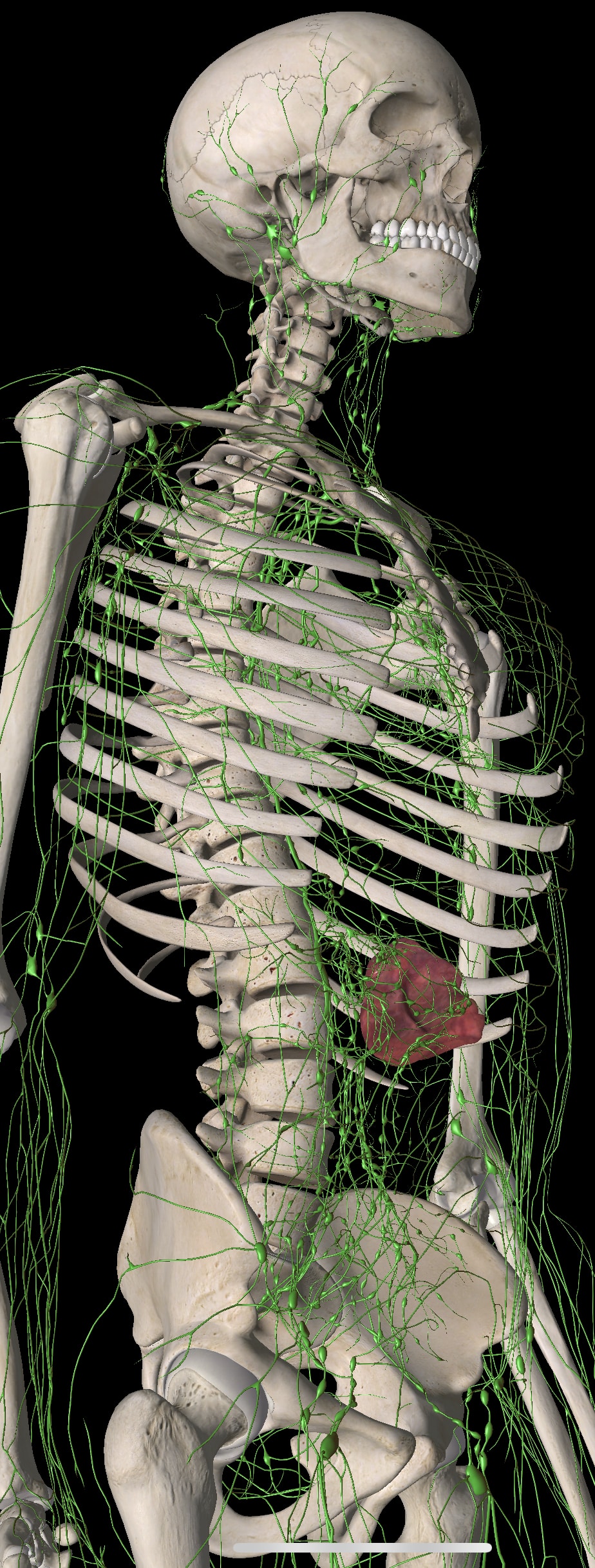The Lymphatic System is responsible for cleansing our muscles, tissues, and organs, carrying out metabolic waste that runs through our body. Metabolic waste in the lymphatic system consists of water, glucose, salts, proteins, fats, white blood cells, and other cellular debris.Side view of a human skeleton