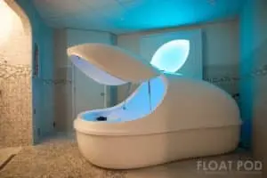 Studies are showing a significant drop of 10-15 points in diastolic blood pressure after just 5 minutes within being in the pod. All participants also reported feeling less stress and having less pain in the lower back and neck after exiting the sensory deprivation pod. Additionally, those participating reported feeling that way post float for up to 20-26 hours after flotation therapy. The pod can only accommodate one person at a time.