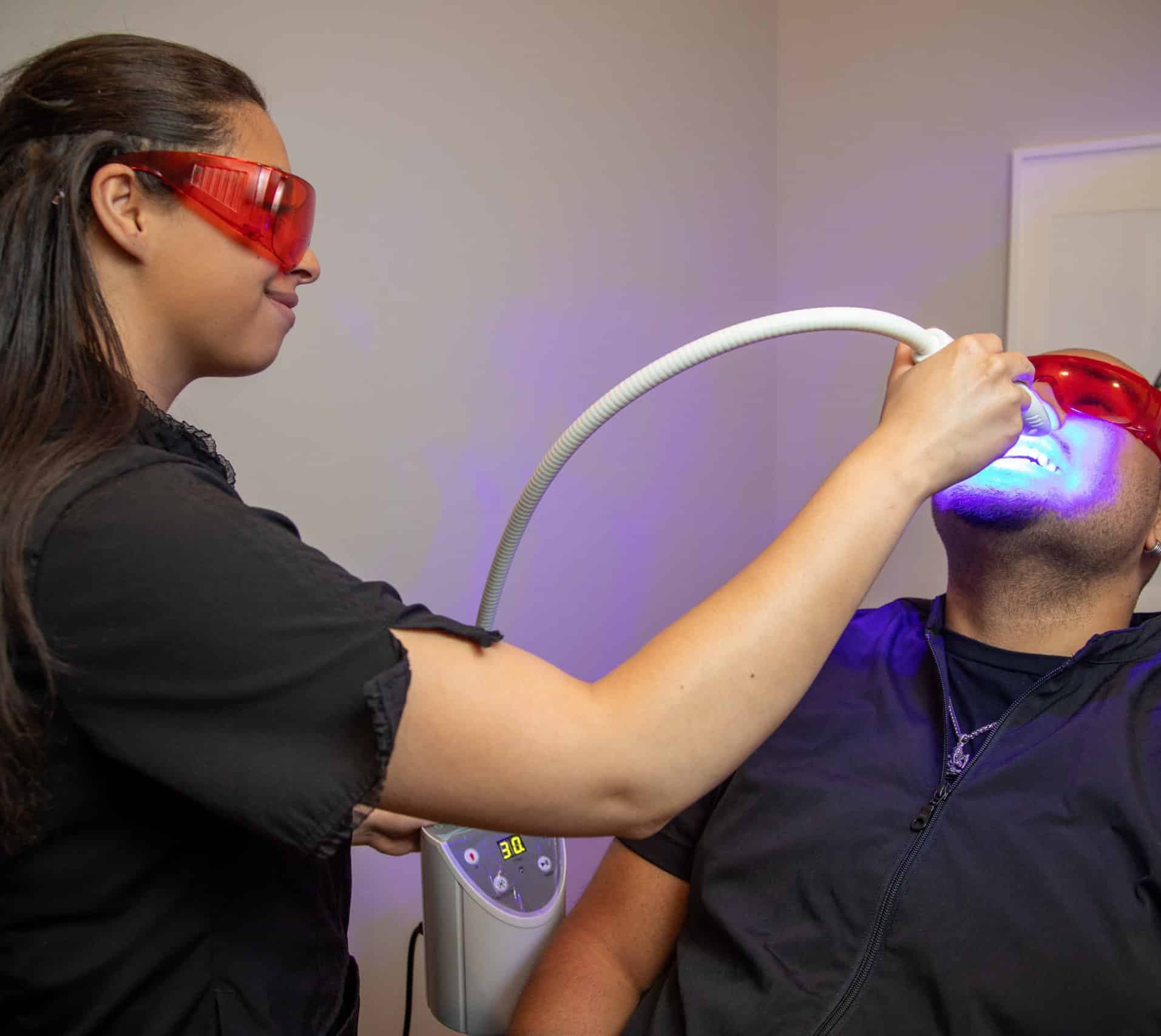 While we recommend 6 monthly visits for maximum results, most people will experience an improvement of 3-4 shades whiter immediately after your first treatment. Subsequent treatments will only enhance with each visit.